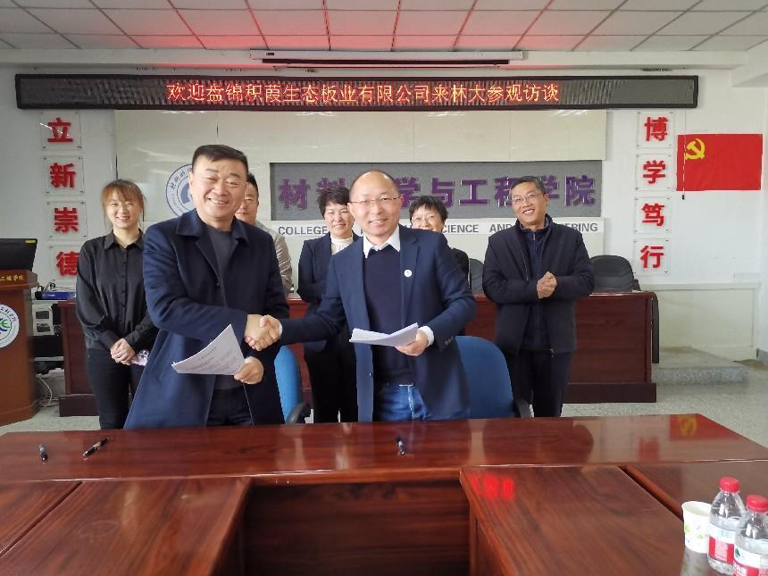 最后,盘锦积葭生态板业与材料科学与工程学院就共同合作意愿达成一致,签订了合作协议。