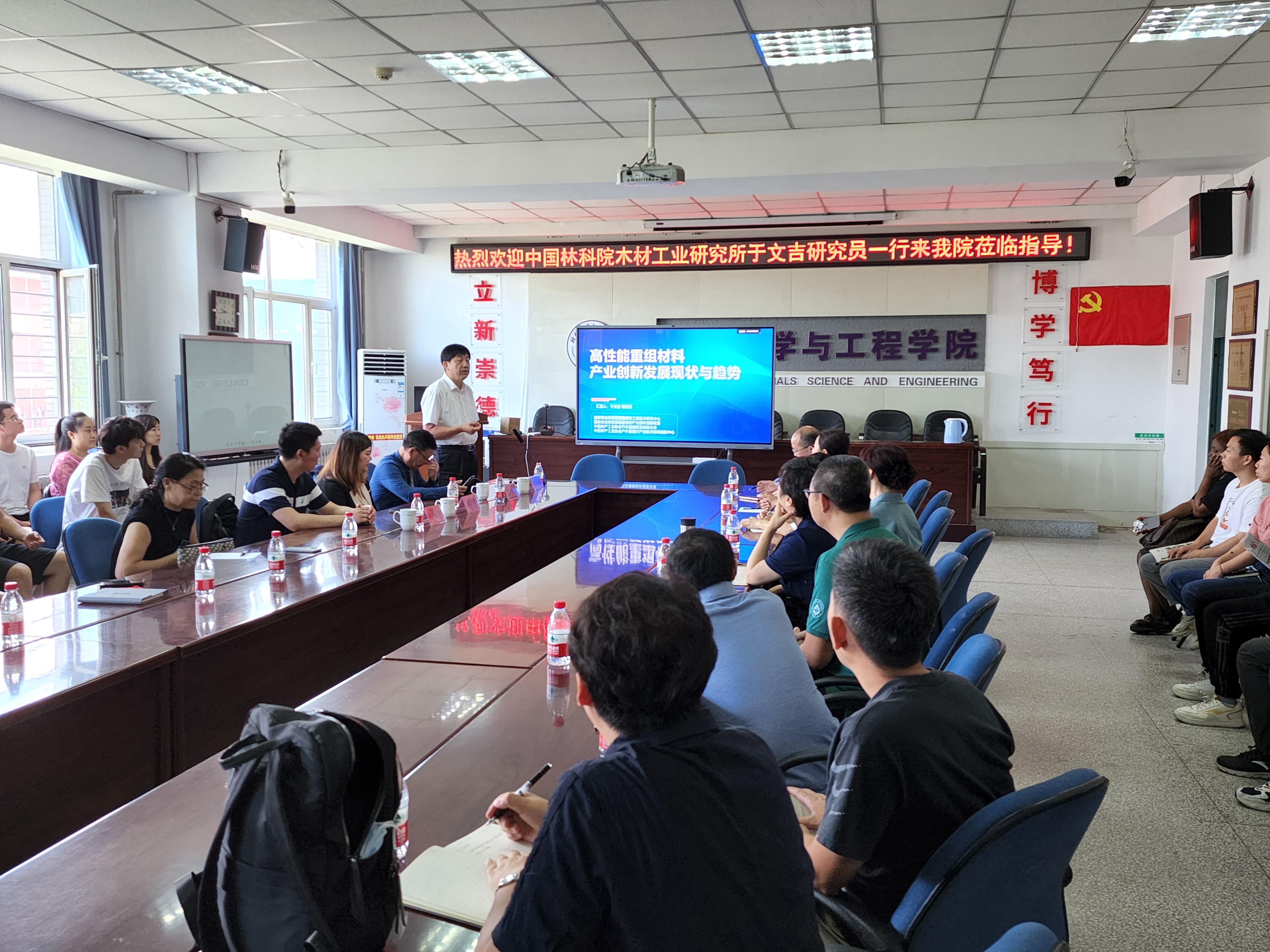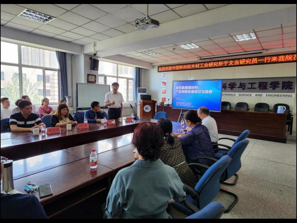 为迎接建校70周年华诞,奏响学术强校最强音,7月9日上午,我校校友中国林科院木材工业研究所于文吉研究员应材料科学与工程学院邀请做题目为我国木质重组材料技术装备发展现状及科学技术问题的学术研讨会,会议在工程楼604会议室举行。