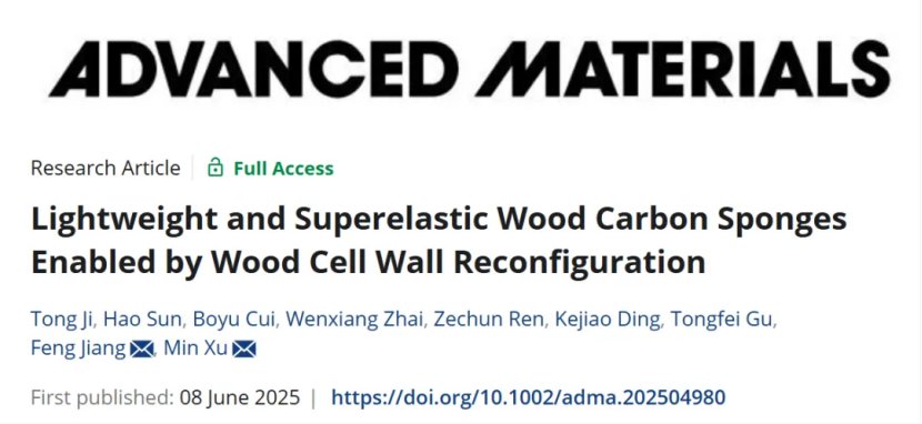 创新点:通过细胞壁分层重构,实现轻量化(密度< 15 mg/cm³)与超弹性的协同优化,工艺绿色且木质素可回收。